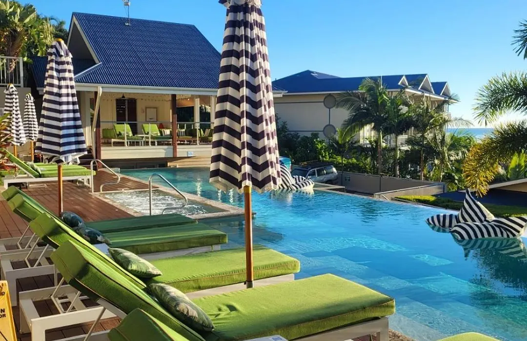 Club Wyndham Airlie Beach, a 4-star accommodation with a rating of 8.5/10 on Booking.com, offers one, two, and three-bedroom apartments with modern amenities and tropical decor. Guests enjoy access to an infinity pool with views of the Coral Sea and the onsite Tides Restaurant, serving freshly cooked local produce.