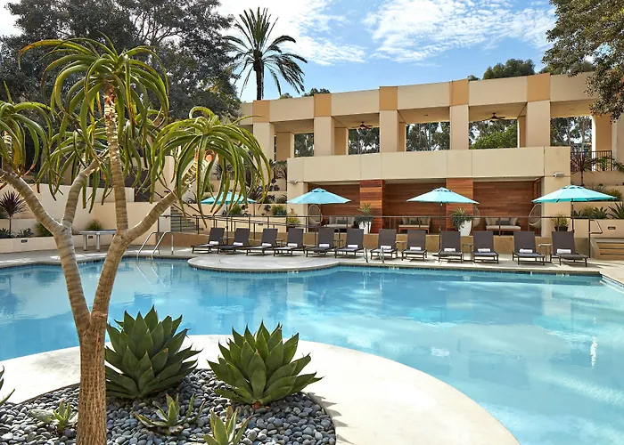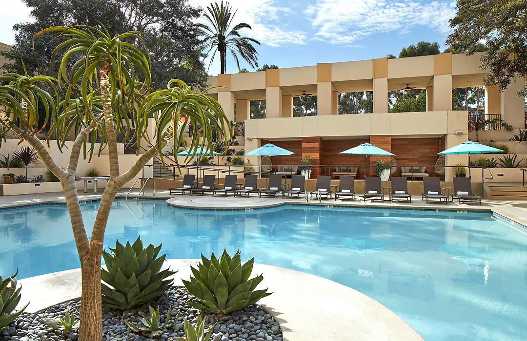 San Diego Marriott Mission Valley, a 3-star hotel with a 7.9/10 rating, offers modern amenities including an outdoor pool with a waterfall and a fully equipped fitness center. Guests can enjoy American and Baja Californian cuisine at the on-site DEN restaurant while being close to popular local attractions.