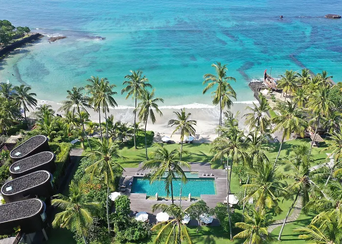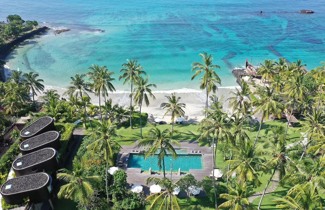 Candi Beach Resort & Spa is a 4-star establishment featuring a private beach and a coconut grove garden, offering direct access to a beautiful white sandy beach. Guests can enjoy wellness treatments and activities in a tranquil East Bali setting, rated 8.9/10 on Booking.com.